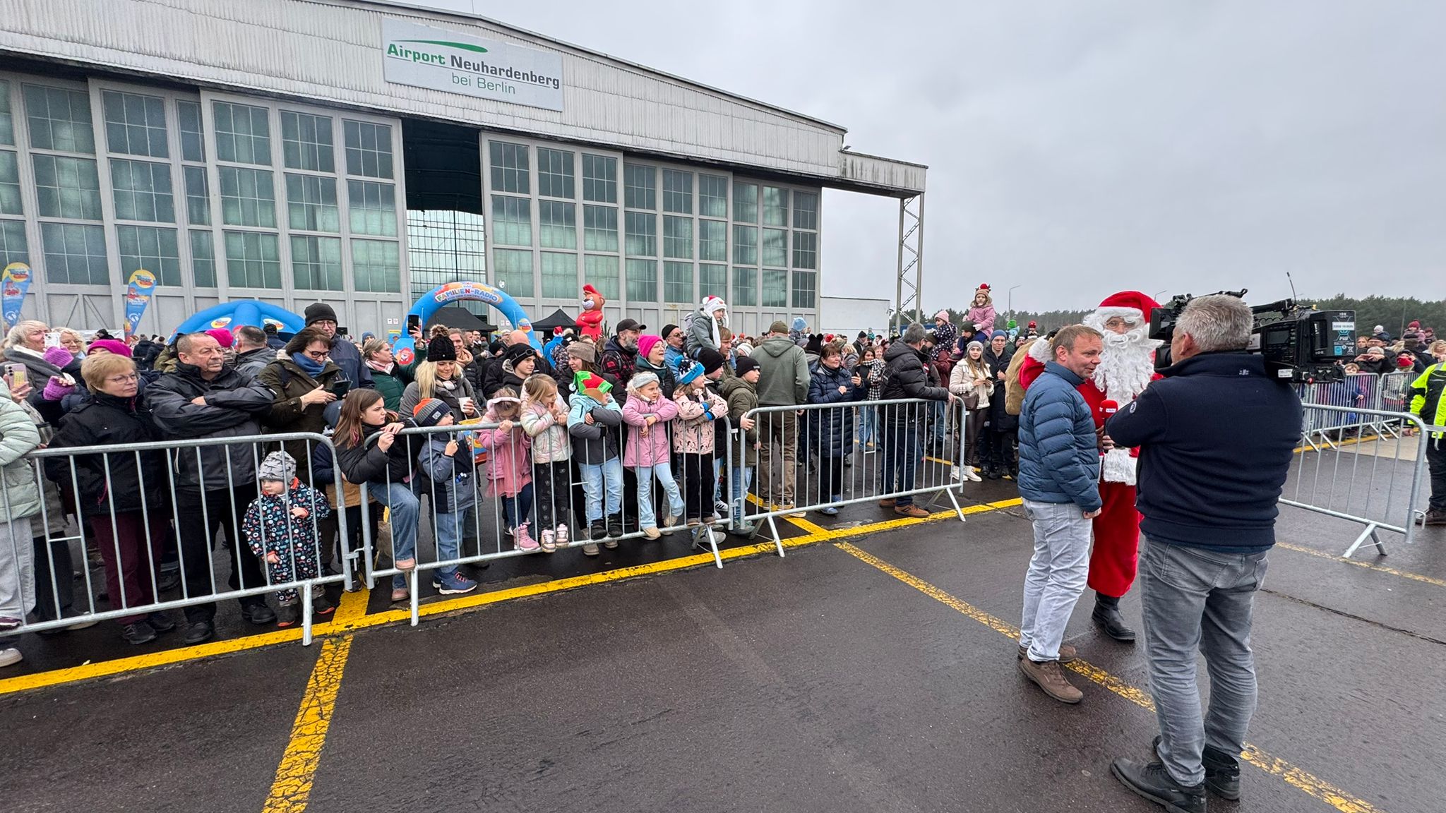 Auch in diesem Jahr startet die Adventszeit bei uns. Heute landete pünktlich der Weihnachtsmann auf unserem Airport. Hunderte Kinder mit ihren Familien erfreuten sich am Besuch von Knecht Ruprecht. Volker Dabow vom Fliegerklub Neuhardenberg holten den Weihnachtsmann extra aus Finnland ab. Eskortiert von in Neuhardenberg beheimateten Zlins erfolgte pünktlich um 13 Uhr die Landung. Bei prächtiger Stimmung begrüßten viele Kinder mit ihren Wunschzetteln und kleinen Gedichten den Weihnachtsmann. Radio Teddy sorgte mit seinen Mitmachaktionen und Moderator Nick für tolle Stimmung. Mehr als 50 Weihnachtsmannhelfer der Simson-Freunde Oderbruch begleiteten den Weihnachtsmann anschließend in Richtung Schlossmarkt. Erstmalig gab es die Gemeinschaftsaktion von Airport, Stiftung Schloss Neuhardenberg und der Gemeinde Neuhardenberg, das zentrale Fest im weihnachtlichem Ambiente rund um unser Schloß zu feiern. Hier führten dann die Mädchen und Jungen der Grundschule ihr Weihnachtsprogramm in der Kirche auf. Kulinarisches und Handwerkskunst laden heute und morgen sowie am 2. Advent an gleicher Stelle zum besuch ein. Ein großes Dankeschön an unsere Partner und alle fleißigen Unterstützer und Helfer, ganz besonders an unsere Mitarbeiter.